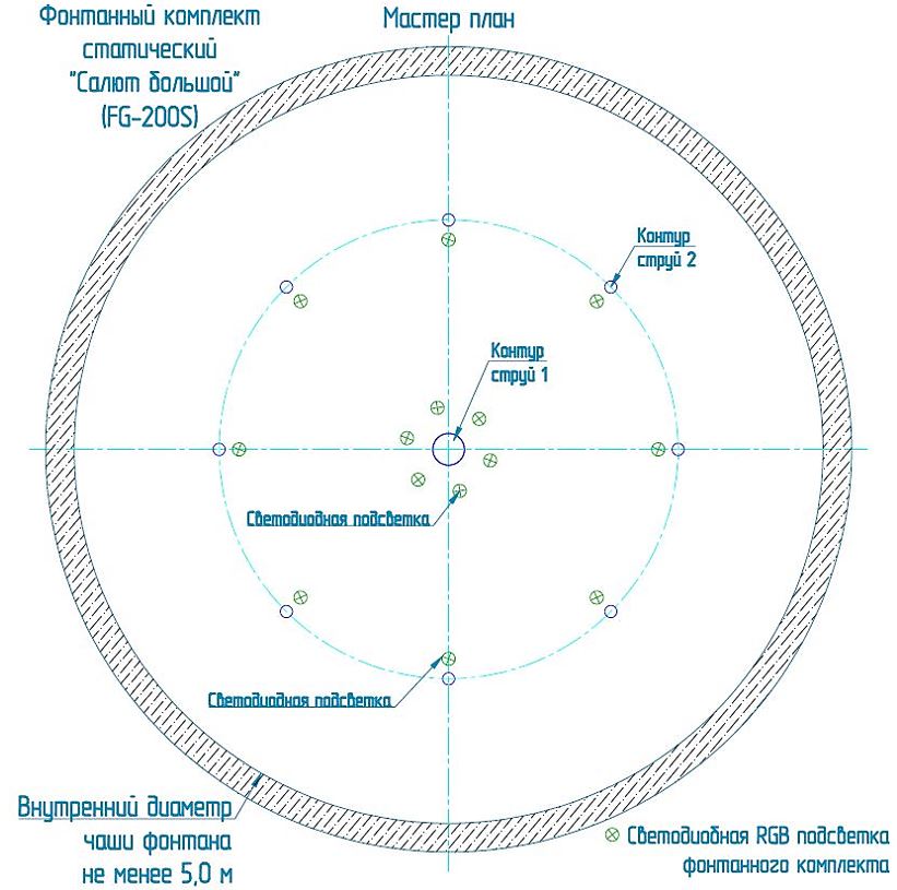 Фонтанный комплект "Салют большой" ø=5 м
